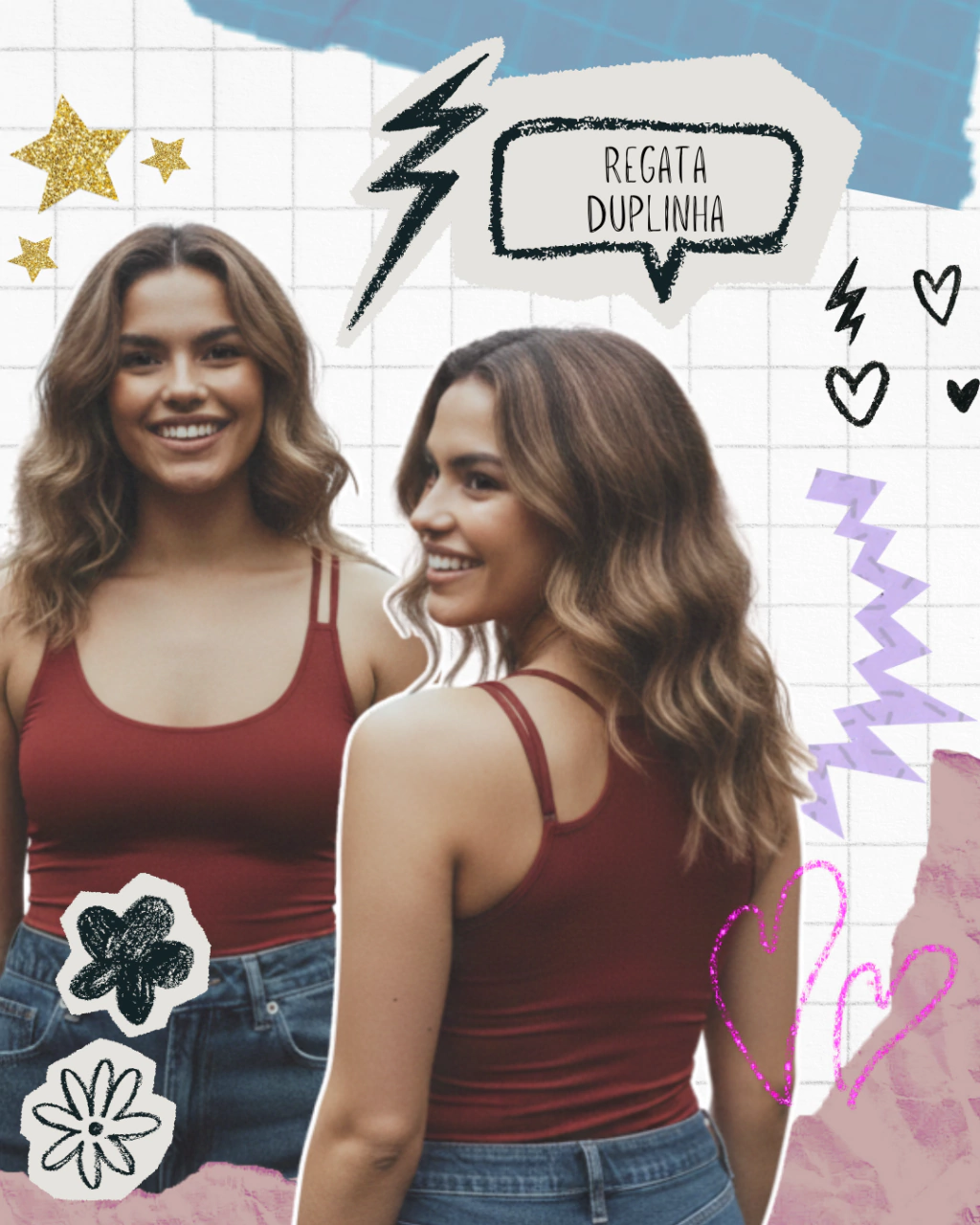 O toque de estilo que seu guarda-roupa merece! Com alça dupla em ambos os lados e decote arredondado, essa regata destaca-se pelo detalhe exclusivo nas costas, garantindo um visual único. A frente com forro reforça a região do busto para maior conforto e segurança. Disponível nas cores vinho, cinza claro e chumbo — escolha a que combina mais com você e arrase em qualquer ocasião!